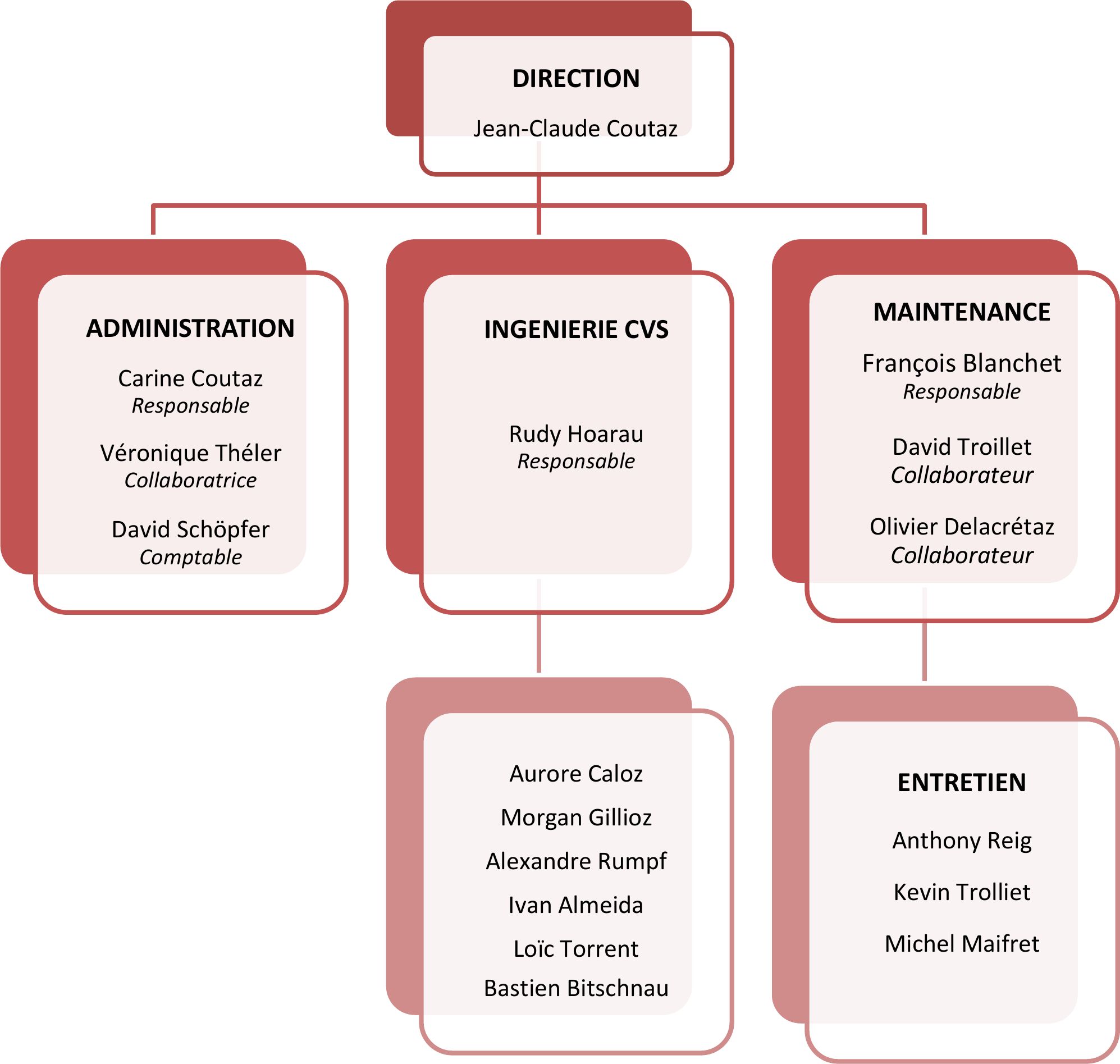 - La première, «Ingénierie», créée en 1972, fournit des prestations d’ingénieurs mécaniciens spécialisés dans la conception des installations techniques du bâtiment (installations de production et de distribution de chaleur, froid, ventilation, climatisation, sanitaires, traitement d’eau), de certains équipements électromécaniques (ventilation de tunnel, station de pompage), ainsi que dans les concepts énergétiques relatifs aux besoins en chaleur, en électricité, en froid (solaire, pompe à chaleur avec moteur électrique ou à gaz, centrale chaleur-force).